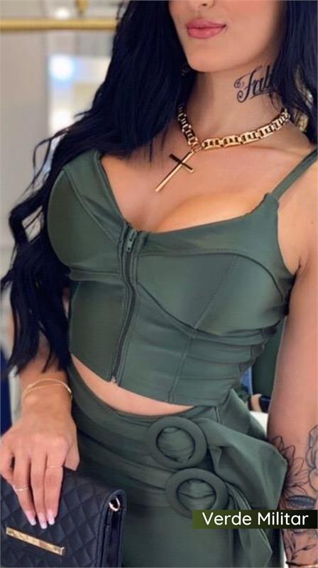 CROPPED NA MALHA PRADA COM ZIPER FRONTAL, COM BOJO.
