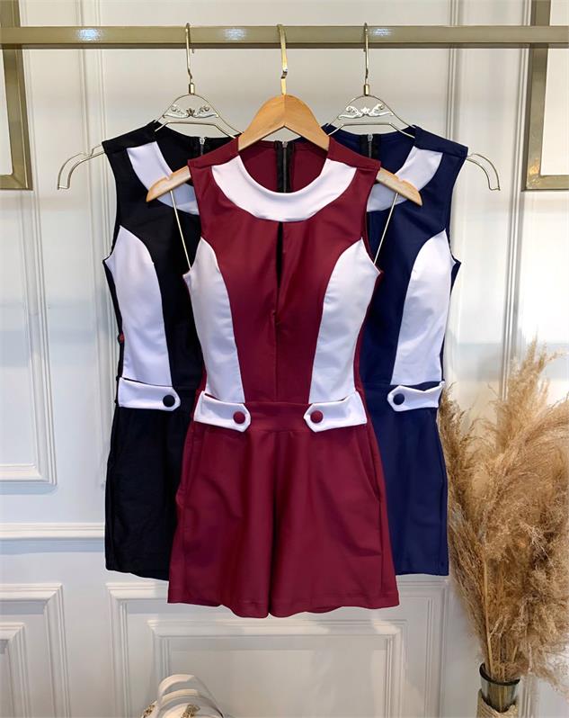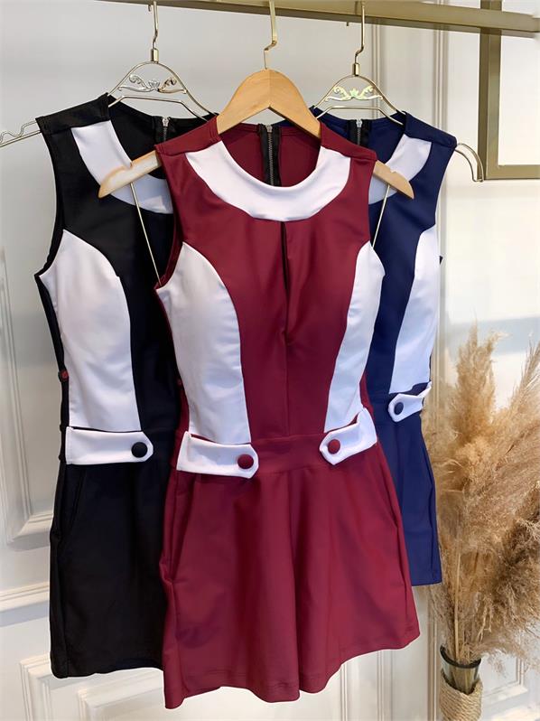 MACAQUITO BICOLOR TECIDO PRADA, ZÍPER NAS COSTAS, COM DECOTE.